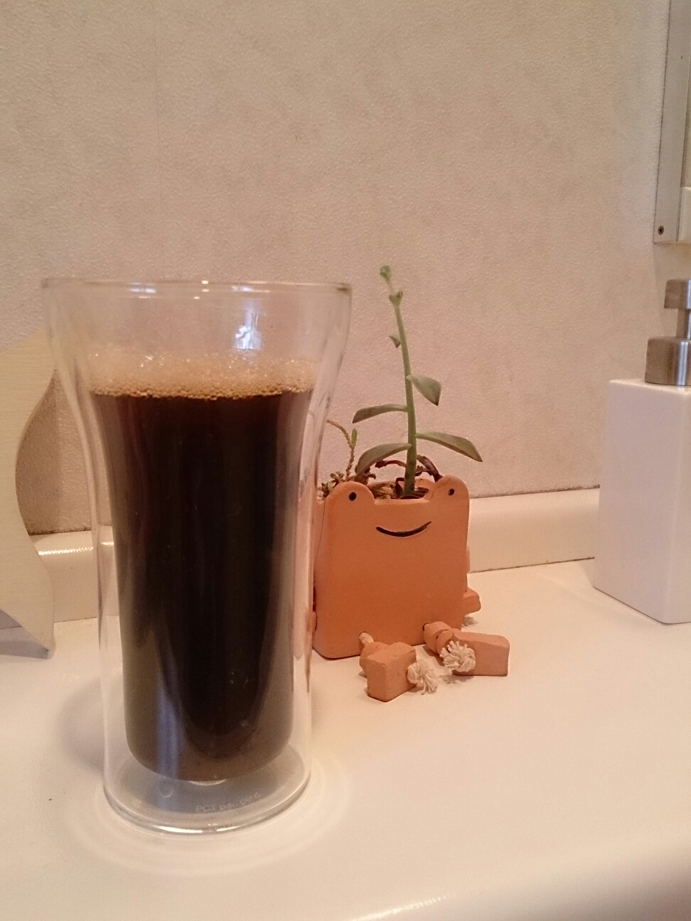 熱いとソッコー飲めんしの。