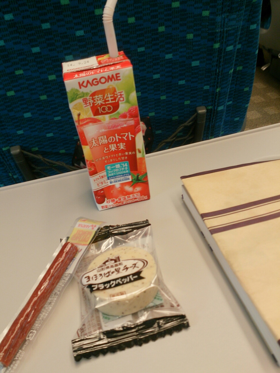 サラミとチーズ齧りながら野菜ジュースなんです。