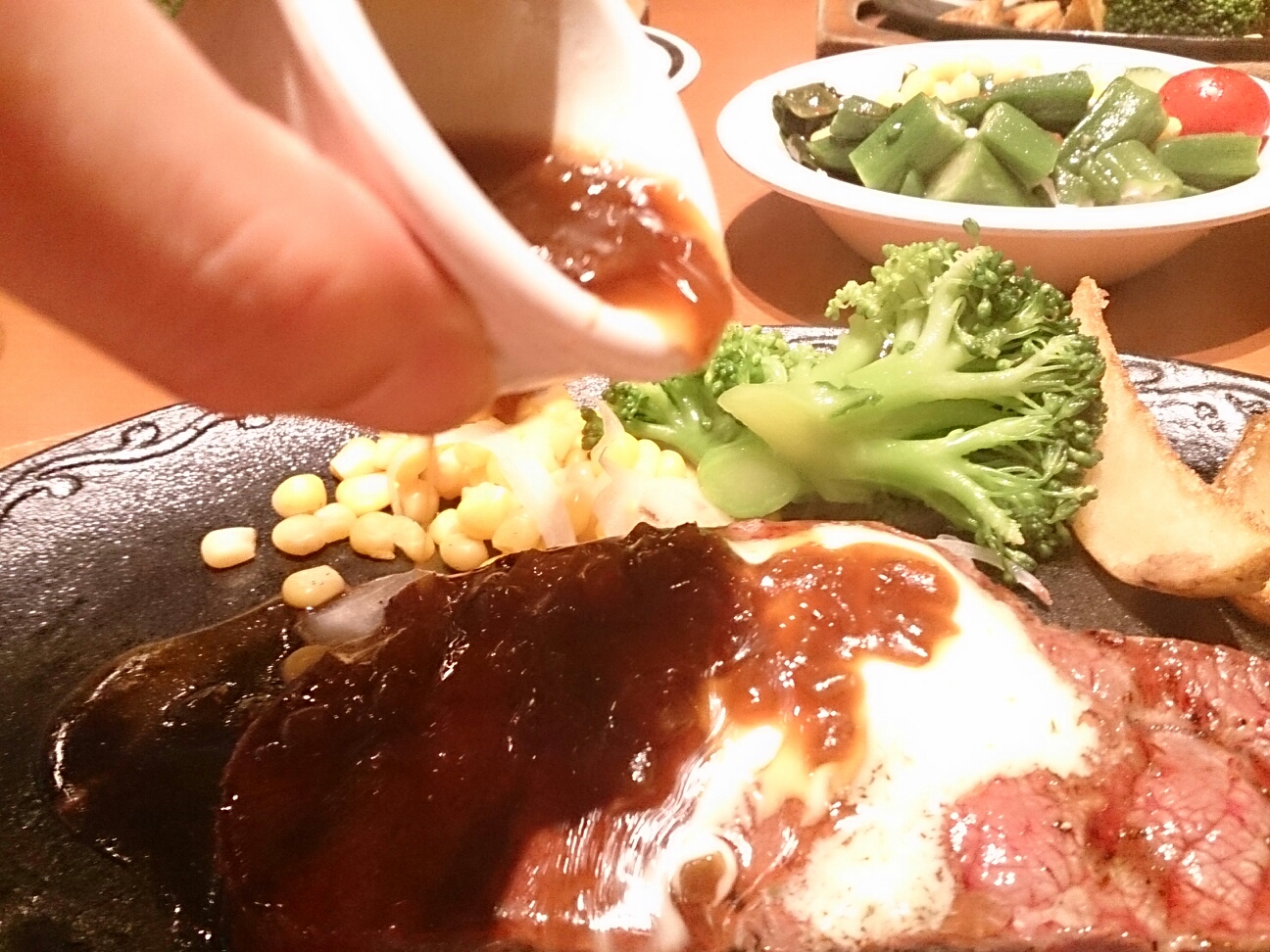 テーブルにタレがあったから追加して、カラメマシマシ