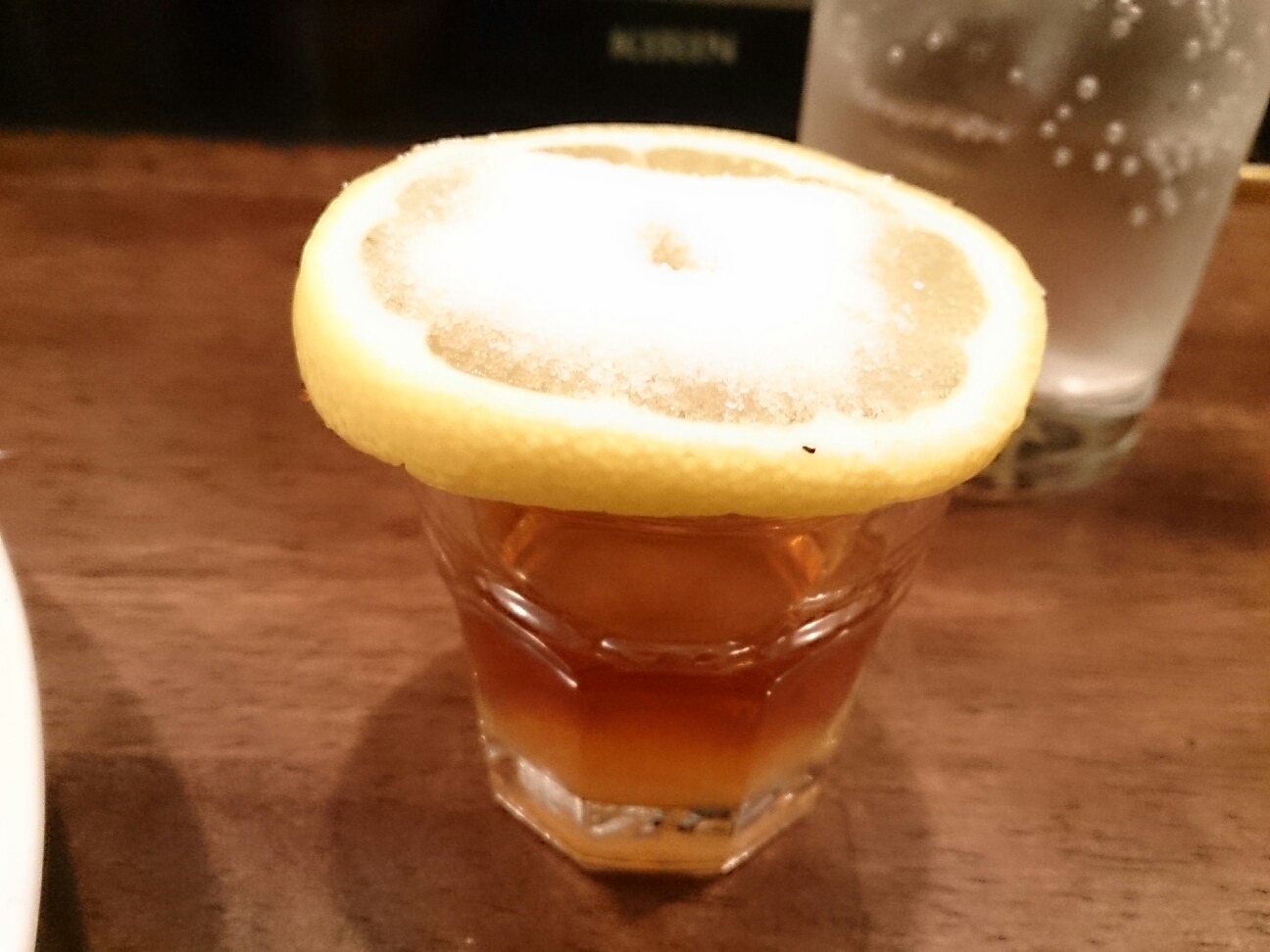 グラニュー糖の乗ったレモンが乗っています。