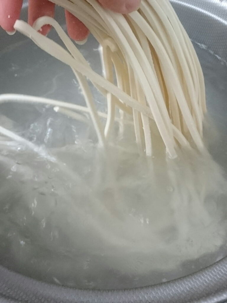 茹で時間を参考に、マイナス5分で麺を味見。
