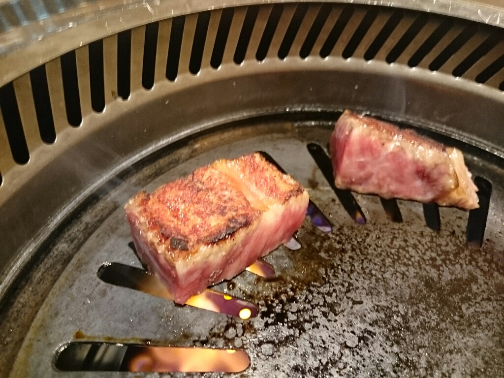 サシがいっぱいのにくを焼いています。