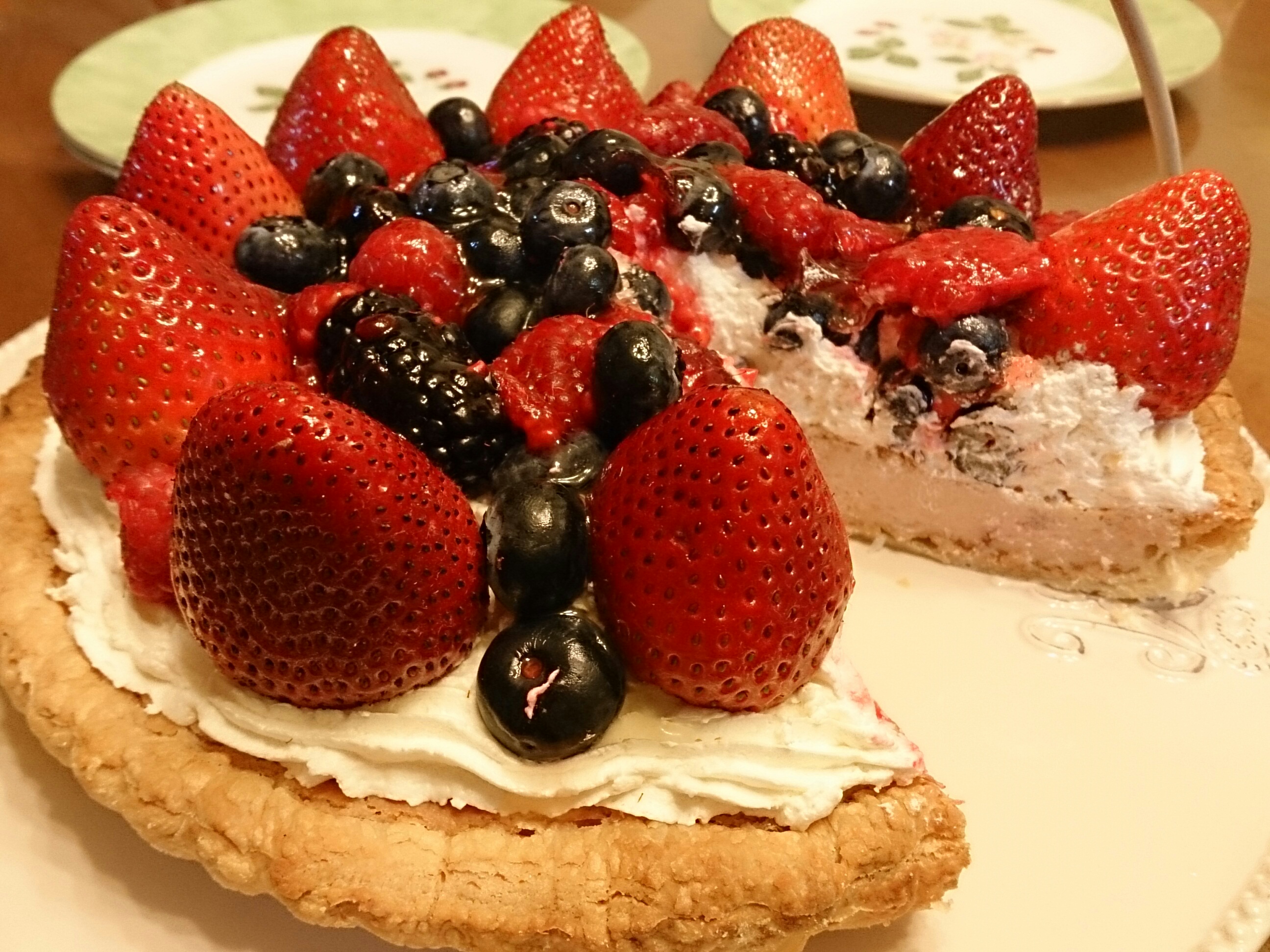 クリームといちご・ブラックベリー・ラズベリー・ブルーベリーをデコします。